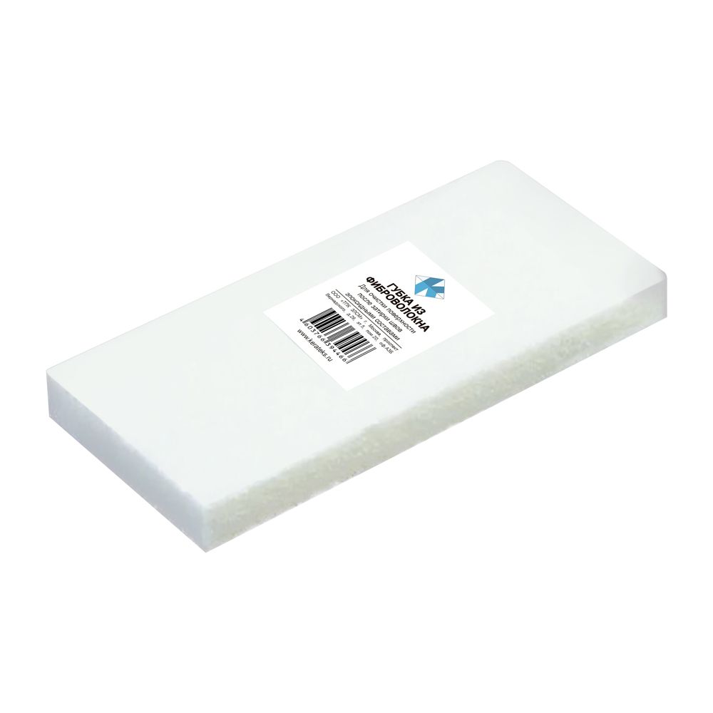 Губка из фиброволокна за счет своей пористой структуры, отлично удаляет с поверхности остатки эпоксидных продуктов. Создавая на поверхности облицовки водяную пленку, разглаживает затирку в швах. Применяется для очистки керамической плитки, мозаики, керамогранита, клинкера, натурального камня, мрамора и др.