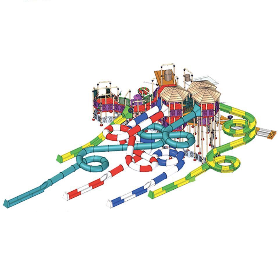 Игровая система активного водного отдыха Arihant WAPS 14А – это семиуровневый мини-аквапарк, включающий в себя 18 платформ. Модель оснащена лабиринтом из спусковых водных горок (4 спиралевидных, 1 прямая, 1 двойная) и множеством зон отдыха с навесами, фонтанами, душами и другими элементами. В общей сложности комплекс отдыха с горками Arihant WAPS 14А включает в себя 150 функциональных элементов, включая 61 струйный разбрызгиватель.