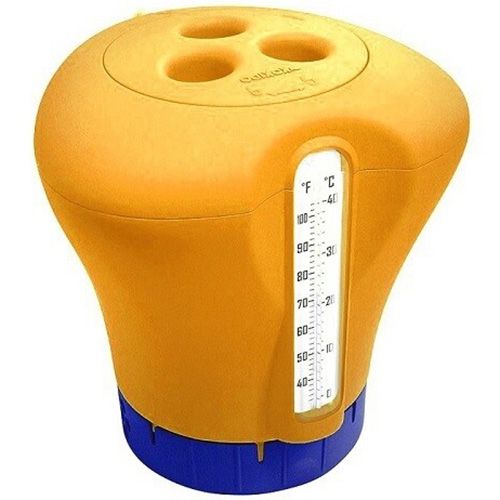 Плавающий дозатор-термометр Kokido K619BU для хлорирования бассейнов. Изготовлен из безвредного полимера. Регулирует интенсивность попадания дезинфицирующих веществ в воду бассейна. Оснащен термометром со шкалой Цельсия и Фаренгейта. Не содержит стекла и ртути. Таблетки в комплект не входят.