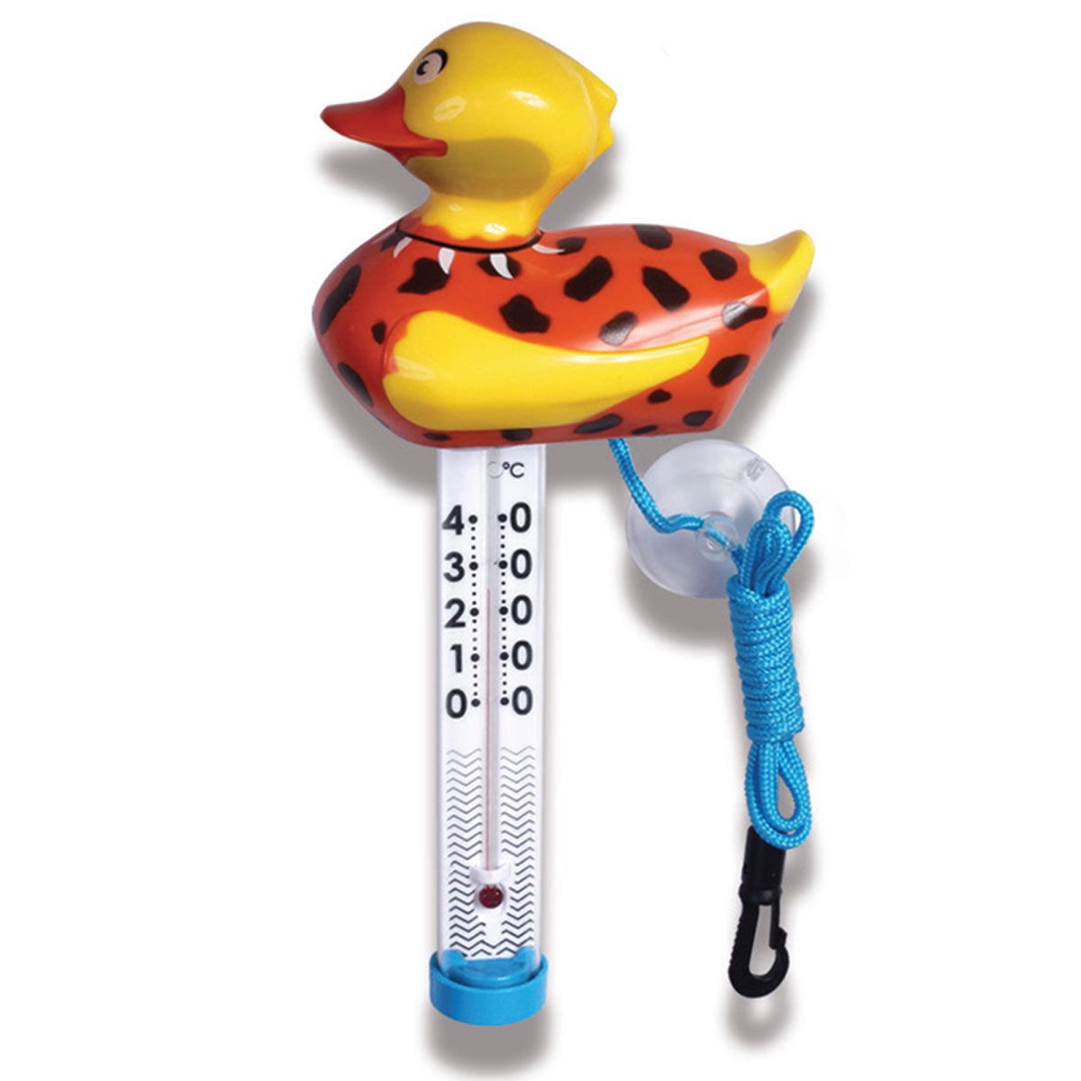 Термометр Kokido TM08CB/18 Утка "Пещерный человек" выполнен из высокопрочного литьевого пластика и резины. Оснащен крепежным шнуром и присоской, с помощью которых вы можете прикрепить его к лестнице или стене вашего бассейна. Имеет одну шкалу - Цельсия. Не содержит фталатов.