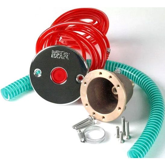 Полный комплект пневмокнопки из нерж. стали Fitstar 7010121 служит для запуска насосов и компрессоров водных аттракционов. Используется для соленой воды. Изготавлена из высокого качества нержавеющей стали AISI-316 и бронзы. Под облицовку бассейна плиткой. В комплект входит фланец, красная кнопка, ниша из латуни, труба, кольцо и шурупы.
