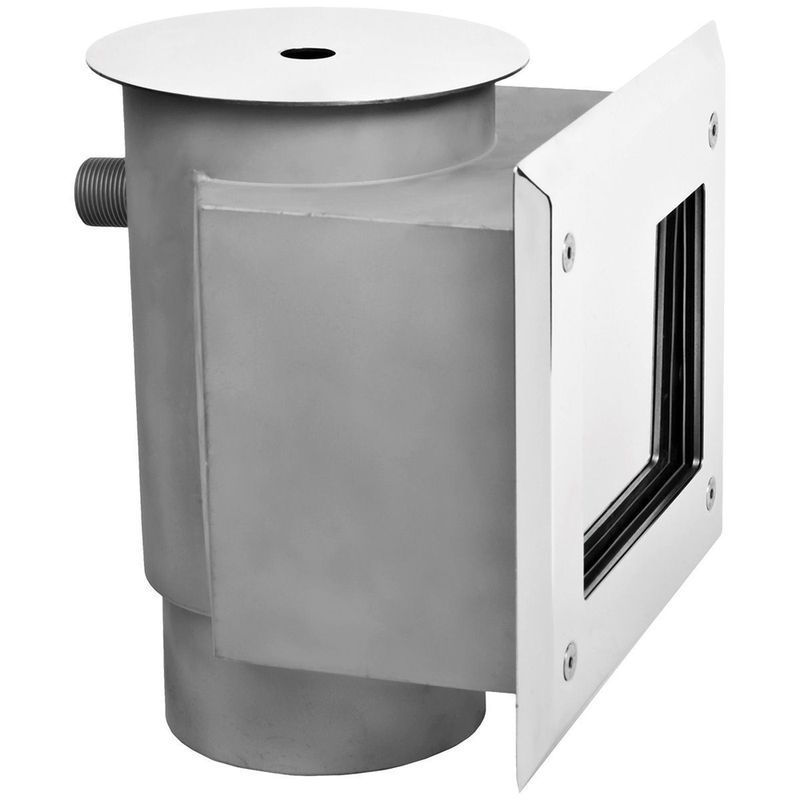 Скиммер изготовлен из зеркально отполированной нержавеющей стали и может устанавливаться как на бетонное основание (кафельная плитка), так и на пластиковое покрытие (плёнка) бассейнов.